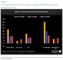The broad economy continues to weaken, but spending on artificial intelligence is on fire. According to Gillian Wolff at Bloomberg Intelligence, global 2025 AI bellwether earnings growth is projected to increase to almost 20%, while non-AI earnings growth declined to just 0.7%. See Table 1. Gerard Macdonell at 22V Research estimated that growth at AI-related sectors explained just under 40% of the 1.6% real GDP growth in the first half of 2025.